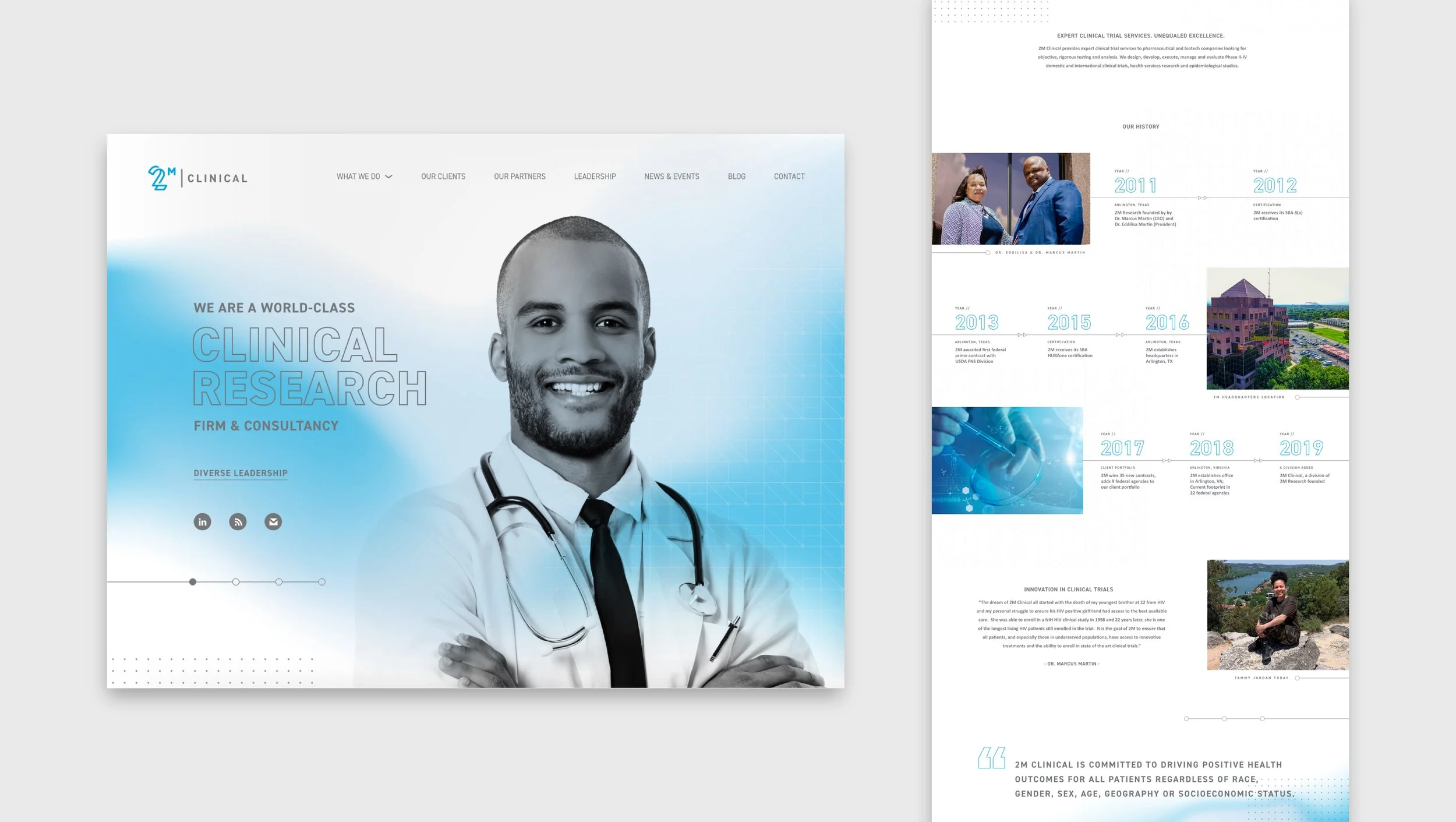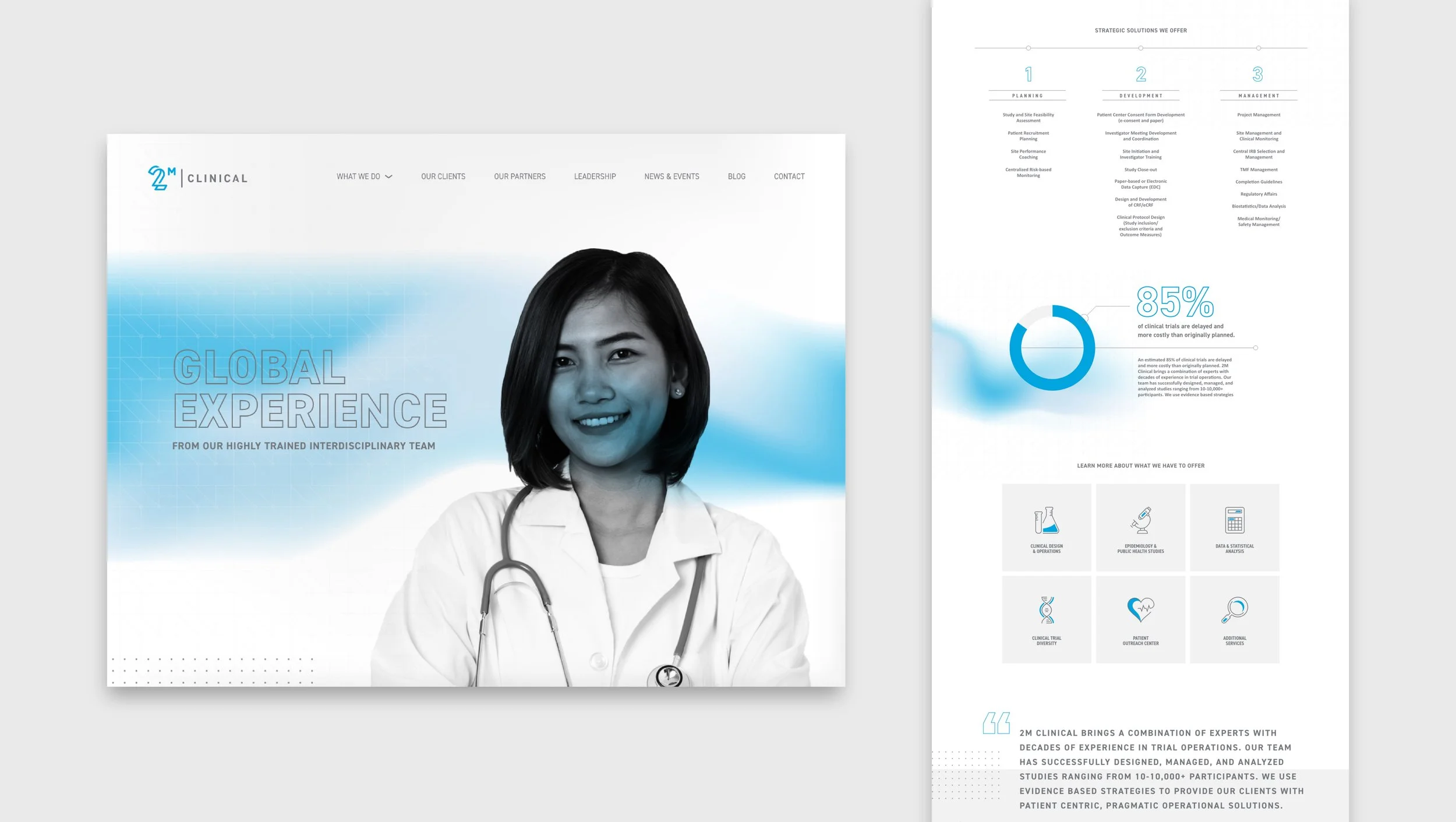 2M Clinical is a minority owned world-class clinical research firm and consultancy. They provide expert clinical trial services to pharmaceutical and biotech companies. With the need to convey 2M’s expertise in the industry, their website needed to showcase a vast amount of knowledge while also expressing their technical side.